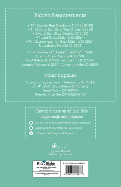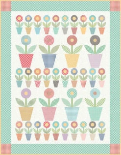 Item Description: The Gingham Garden Quilt by Lori Holt of Bee in my Bonnet features appliqued potted flowers. Finished size is 70″ x 89 1/2″.