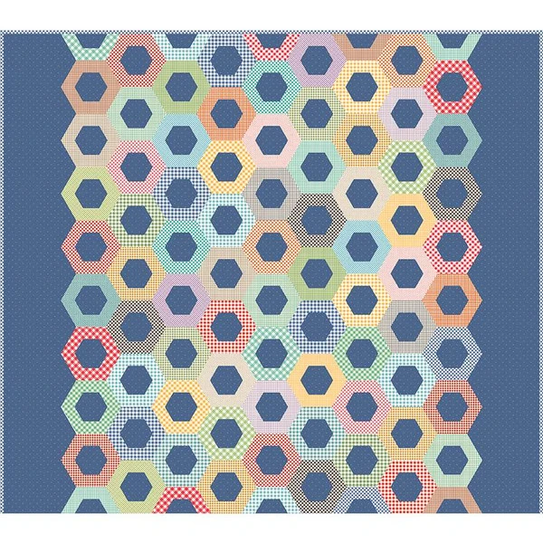Item Description: The Honeycomb Quilt by Lori Holt of Bee in my Bonnet features pieced and appliqued hexagons. Finished size is 68″ x 76″.