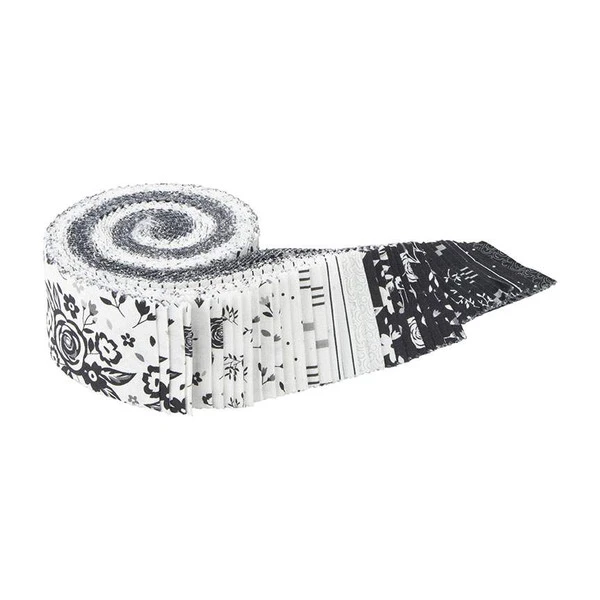 Item Description: This 2 1/2″ Rolie Polie precut bundle includes 40 pieces from the Black Tie collection by Dani Mogstad for Riley Blake Designs. Each print will be included 2-3 times in the bundle.