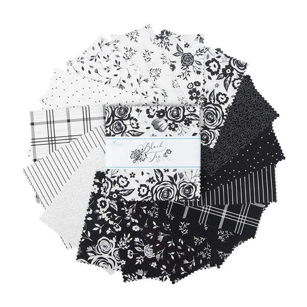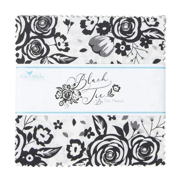 Item Description: This 5″ Stacker precut bundle includes 42 pieces from the Black Tie collection by Dani Mogstad for Riley Blake Designs. Each print will be included 2-3 times in the bundle.