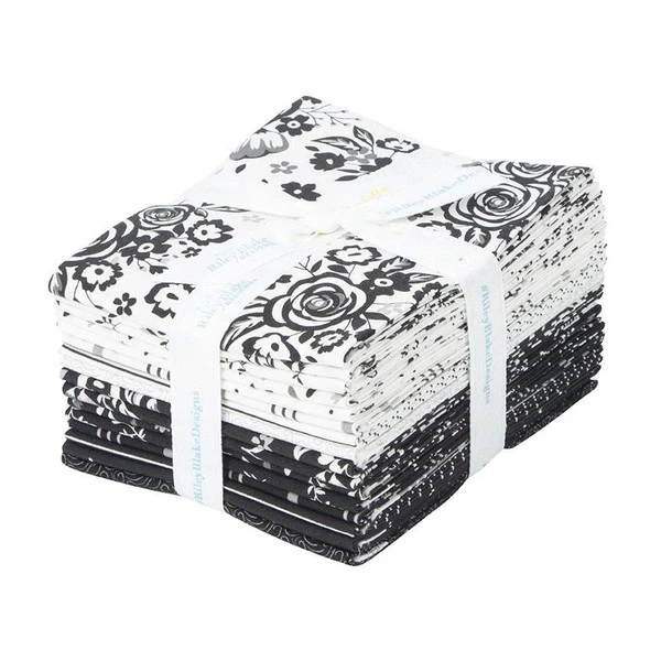 Item Description: This Fat Quarter precut bundle includes 16 pieces from the Black Tie collection by Dani Mogstad for Riley Blake Designs.