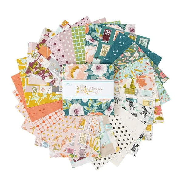 Item Description: This 5″ Stacker precut bundle includes 42 pieces from the Blossom Lane collection by Katherine Lenius for Riley Blake Designs. Each print will be included 1-2 times in the bundle.