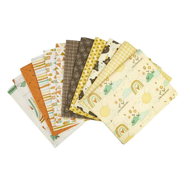 Item Description: This 1-Yard precut bundle includes a 1-yard piece of each print in the sunshine colorway (C12670-SUNSHINE, C12671-SUNSHINE, C12672-ORANGE, C12673-CREAM, C12674-YELLOW, C12675-BROWN, C12676-BROWN, C12676-SUNSHINE, C12677-CREAM, C12678-CREAM) and P12679-PANEL and P12680-PANEL from the Bumble and Bear collection by Sandy Gervais for Riley Blake Designs for a total of 10 yards and 2 panels.