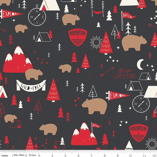 Item Description: This double napped flannel by My Mind’s Eye for Riley Blake Designs is great for apparel, blankets, quilts and quilt backs. This print features outdoor adventure icons, such as trees, bears, tends, compasses, and more.