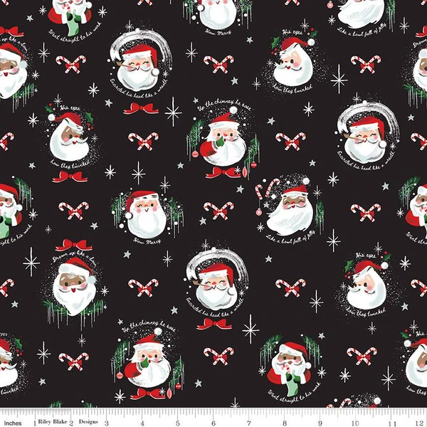 This double napped flannel by Jill Howarth for Riley Blake Designs is great for apparel, blankets, quilts and quilt backs. This print features Santa with text from Twas the Night Before Christmas, candy canes, and stars