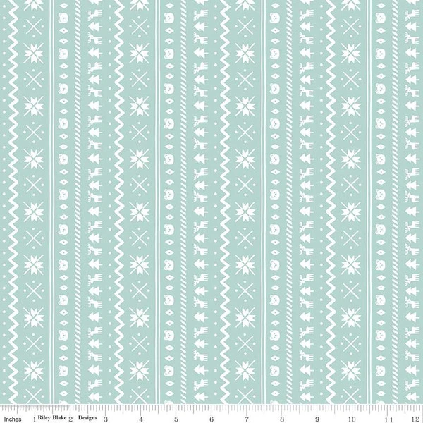 Item Description: This double napped flannel from Northern Lights by Natàlia Juan Abelló for Riley Blake Designs is great for apparel, blankets, quilts and quilt backs. This striped print features snowflakes, bears, trees, reindeer, and more.