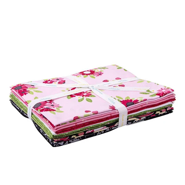 Item Description: This 1-Yard precut bundle includes a 1-yard piece of each print in the pink colorway (C14010-PINK, C14011-BERRY, C14012-BLACK, C14013-BLACK, C14014-GREEN, C14015-WHITE, C14016-GREEN, C14017-ROSE) and P14019-PANEL from the Flour & Flower collection by Jill Finley for Riley Blake Designs for a total of 8 yards and 1 panel.