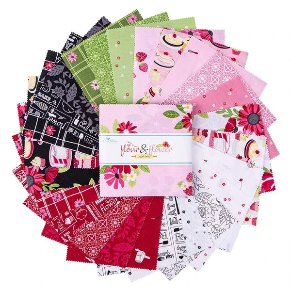 Item Description: This 5″ Stacker precut bundle includes 42 pieces from the Flour & Flower collection by Jill Finley for Riley Blake Designs. Each print will be included 1-2 times in the bundle. CV14018 is not included.