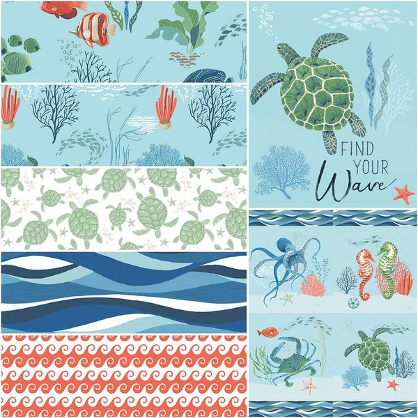 Item Description: This 1-Yard precut bundle includes a 1-yard piece of each print in the aqua colorway (C14800-AQUA, C14801-AQUA, C14802-WHITE, C14803-BLUE, C14804-RED) and the P14805 and PP14806 panels from the Free as the Ocean collection by Lisa Audit for Riley Blake Designs for a total of 5 yards and 2 panels.