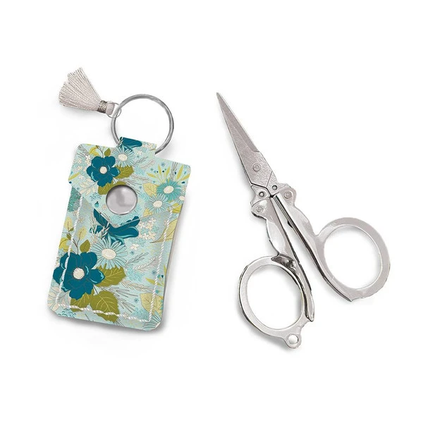 Item Description: The Scissor Pouch by Hometown Leatherworks for Riley Blake Designs is proudly American made by hometown artisans. This pouch, fashioned from top-notch full-grain leather, is both hard-wearing and fashionable, rendering it a superb complement to your crafting gear. The snap closure effectively shields your sewing scissors, keeping them safe and secure. The leather scissor pouch will aid you in staying organized, enabling you to concentrate on your crafting instead of hunting for supplies. Regardless of whether you’re creating something extraordinary or simply striving to keep your workspace neat, the Finished Leather Scissor Pouch is the ultimate selection for all crafters. The pouch includes a pair of folding embroidery scissors. This pouch features a design from Feed My Soul by Sandy Gervais. Pouch size is 2″ x 2 1/2″.
