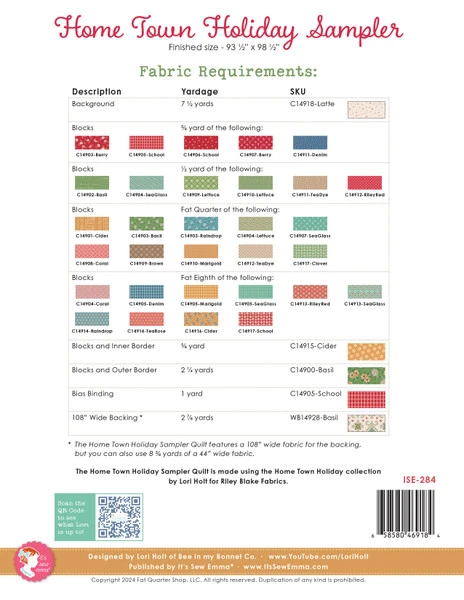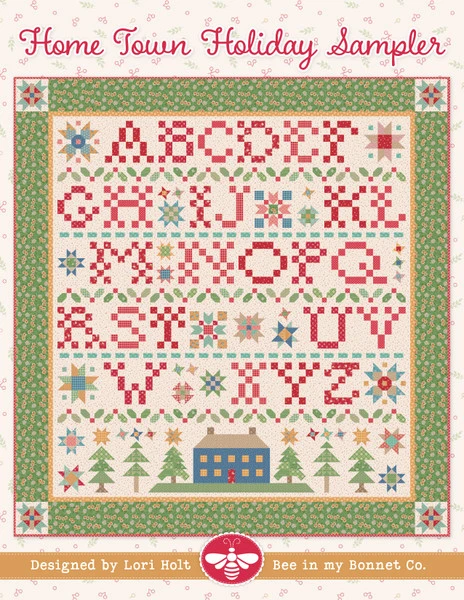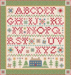Item Description: The Home Town Sampler Quilt by Lori Holt of Bee in my Bonnet for It’s Sew Emma features a quilt designed in the style of a vintage cross stitch sampler. Finished size is 93 1/2″ x 98 1/2″.