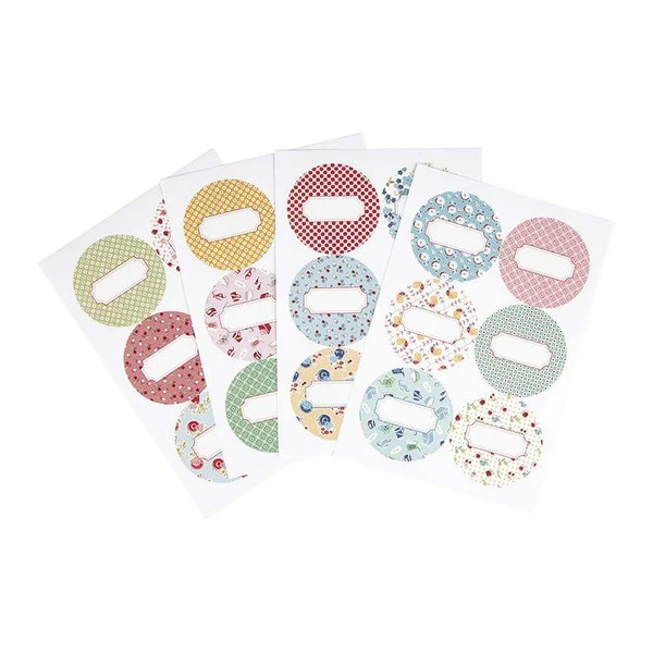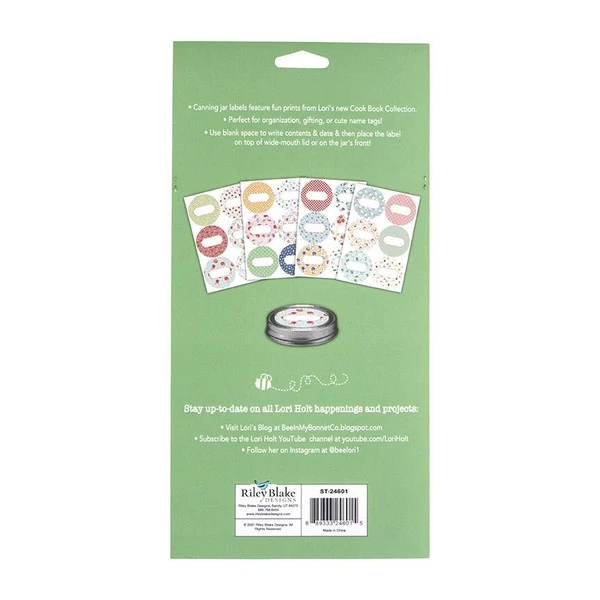 Item Description: The Cook Book Canning Jar Labels by Lori Holt of Bee in my Bonnet include a blank space for labeling the jar contents. They work perfect on a wide-mouth lid or even the jar front. The labels would also make cute nametags. The package includes 24 labels and features prints from the Cook Book collection. Size is 2 1/2″ circle.
