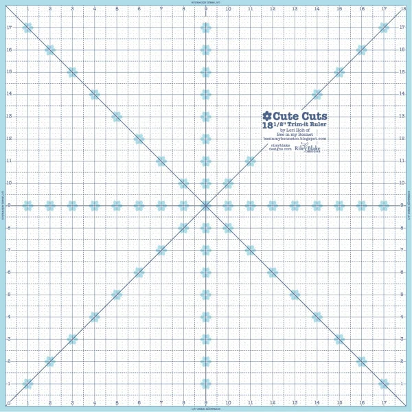 Item Description: The Trim-it™ Rulers by Lori Holt of Bee in my Bonnet are non-slip and easy to use for trimming up your blocks after piecing, applique or embroidery. Use the diagonal lines to easily center your block when trimming and and use the colored outside 1/4″ seam allowance marks to help you see what will show of your block after sewing it into your quilt. The ruler has aqua and denim markings printed in 1″ grids marked in 1/8″ and 1/4″ increments.