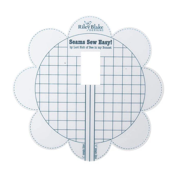 Item Description: New and improved! The center is now precut to give you a smooth surface for sewing. Lori Holt designed her Seams Sew Easy™ Seam Guide for an accurate 1/4″ seam and for constructing easy corner triangles. This tool saves time by not having to mark lines on your fabric when sewing half square triangles, flying geese or snowballs. The center circle of the guide is also marked with 1/2″ grid lines for a wider seam allowance. This is a seam guide that temporarily adheres to the bed of any sewing machine. These grid lines also help to ensure correct placement when adhering to your sewing machine bed. Watch a video by Lori Holt here that explains how to use the guide on your sewing machine. Fast forward to 5:15 to go directly to the explanation.