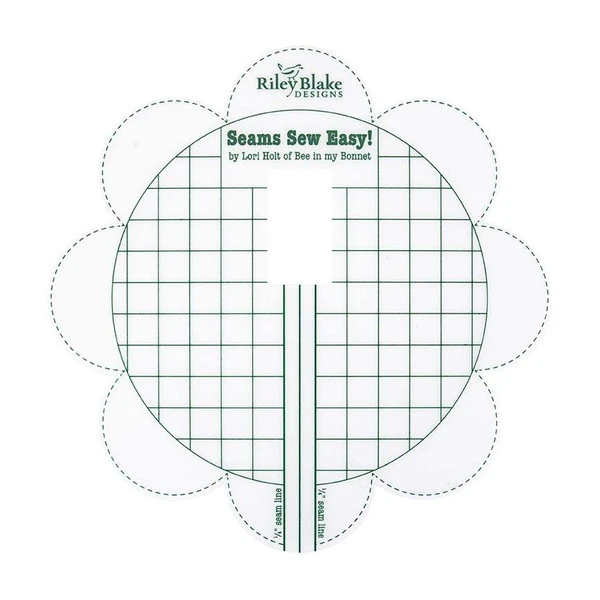 Item Description: New and improved! The center is now precut to give you a smooth surface for sewing. Lori Holt designed her Seams Sew Easy™ Seam Guide for an accurate 1/4″ seam and for constructing easy corner triangles. This tool saves time by not having to mark lines on your fabric when sewing half square triangles, flying geese or snowballs. The center circle of the guide is also marked with 1/2″ grid lines for a wider seam allowance. This is a seam guide that temporarily adheres to the bed of any sewing machine. These grid lines also help to ensure correct placement when adhering to your sewing machine bed. Watch a video by Lori Holt here that explains how to use the guide on your sewing machine. Fast forward to 5:15 to go directly to the explanation.