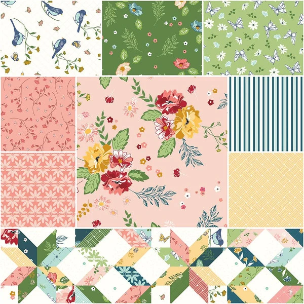 Item Description: This 1-Yard precut bundle includes a 1-yard piece of each print in the peaches ‘n cream colorway (C15140-PEACHES, C15141-CLOUD, C15142-CLOVER, C15143-GRASS, C15144-APRICOT, C15145-SALMON, C15146-OXFORD, C15147-BEEHIVE, C15148-MULTI) from the Melody collection by Beverly McCullough for Riley Blake Designs for a total of 9 yards.