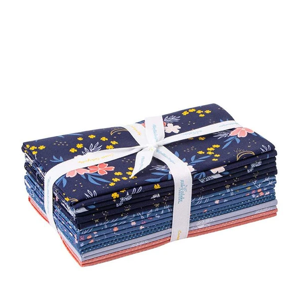 Item Description: This 1-Yard precut bundle includes a 1-yard piece of each print in the midnight colorway (SC13820-MIDNIGHT, C13821-DENIM, SC13822-MIDNIGHT, C13823-DENIM, C13824-FOG, SC13825-MIDNIGHT, C13826-CORAL, C13826-DENIM) from the Moonchild collection by Fran Gulick of Cotton and Joy for Riley Blake Designs for a total of 8 yards.