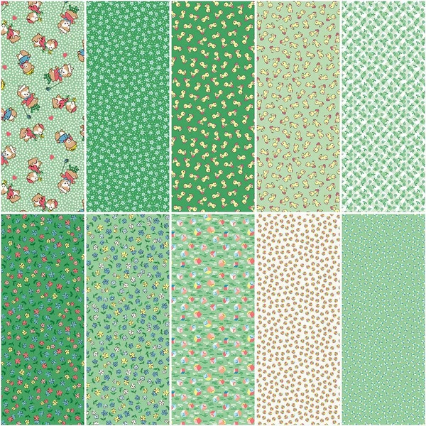 Item Description: This 1-Yard precut bundle includes a 1-yard piece of each print in the green colorway (C15150-GREEN, C15151-KELLY, C15152-KELLY, C15152-MINT, C15153-GREEN, C15154-GREEN, C15154-KELLY, C15155-GREEN, C15156-CLOUD, C15156-GREEN) from the Playtime 30’s collection by Lindsay Wilkes of the Cottage Mama for Riley Blake Designs for a total of 10 yards.
