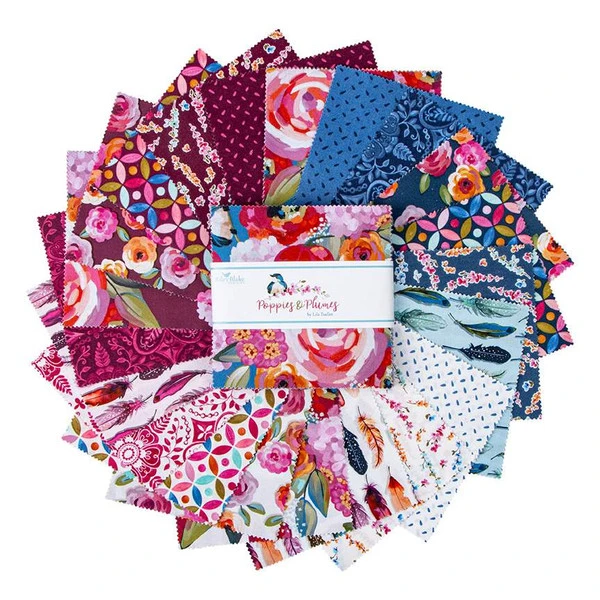 Item Description: This 5″ Stacker precut bundle includes 42 pieces from the Poppies & Plumes collection by Lila Tueller for Riley Blake Designs. Each print will be included 2 times in the bundle.