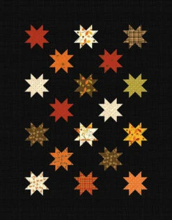 Item Description: The Casual Friday Project Pattern by Sandy Gervais of Pieces from My Heart features patterns for a table runner, a mat, and a quilt. One 10-inch stacker will make all three projects. The table runner features pieced witches and stars on a black texture background. Finished size is 23″ x 61″. The Star Mat features pieced stars on a black texture background. Finished size is 28″ x 36″. The Witch Quilt features pieced witches on a black texture background surrounded by sashing and borders and a few pieced stars. Finished size is 48″ x 59″.