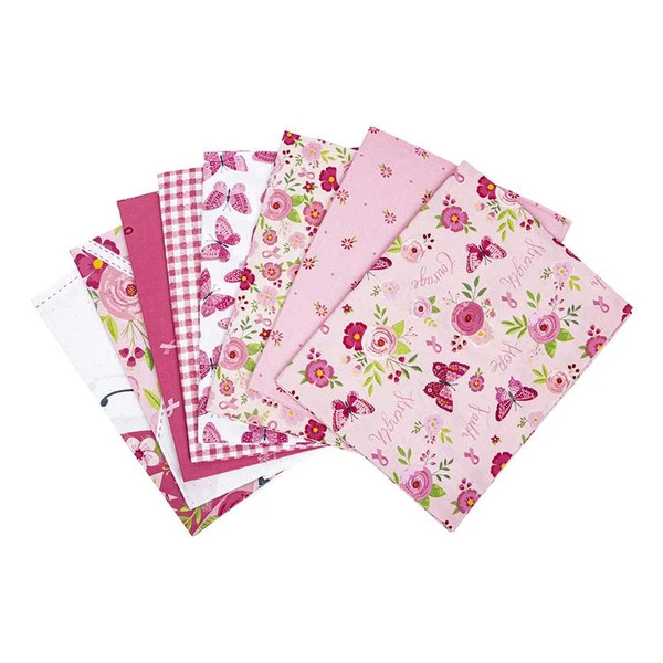 Item Description: This 1-Yard precut bundle includes a 1-yard piece of each print in the pink colorway (C12620-PINK, C12621-WHITE, C12622-DKPINK, C12623-BLUSH, C12624-DKPINK, C12625-PINK) and the P12626-RIBBON and P12627-BUTTERFLY panels from the Strength in Pink collection for Riley Blake Designs for a total of 6 yards and 2 panels.