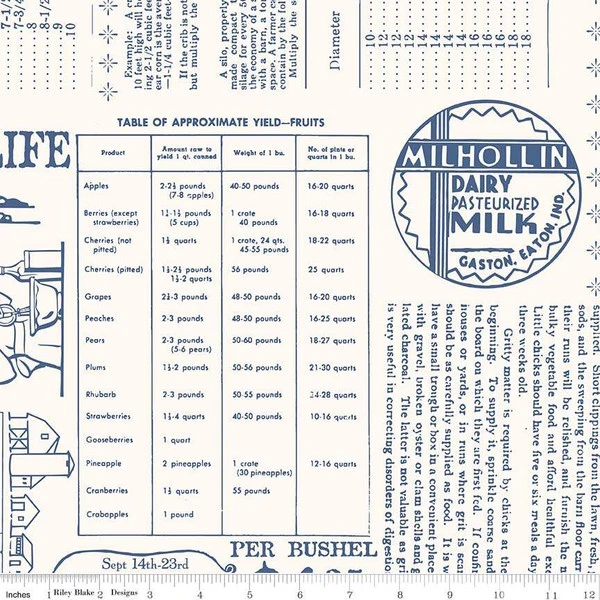 Item Description: Farm Girl Vintage by Lori Holt of Bee in my Bonnet for Riley Blake Designs is great for quilting, apparel and home decor. This text print features farming ads, sayings, and illustrations. It’s 107″/108″ wide to accommodate most quilt backs.